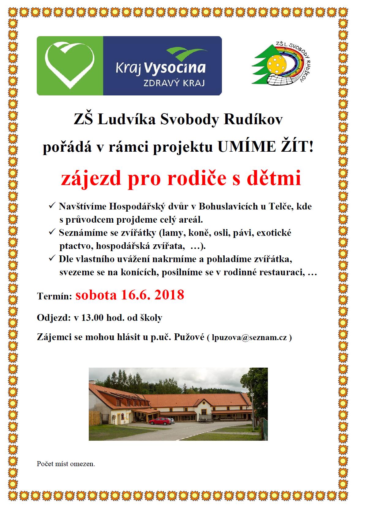 Na čtyřicet výletníků se v sobotu 16. června vydalo v rámci projektu UMÍME ŽÍT! sponzorovaného Zdravým krajem Vysočina do areálu Hospodářského dvora do Bohuslavic u Telče.