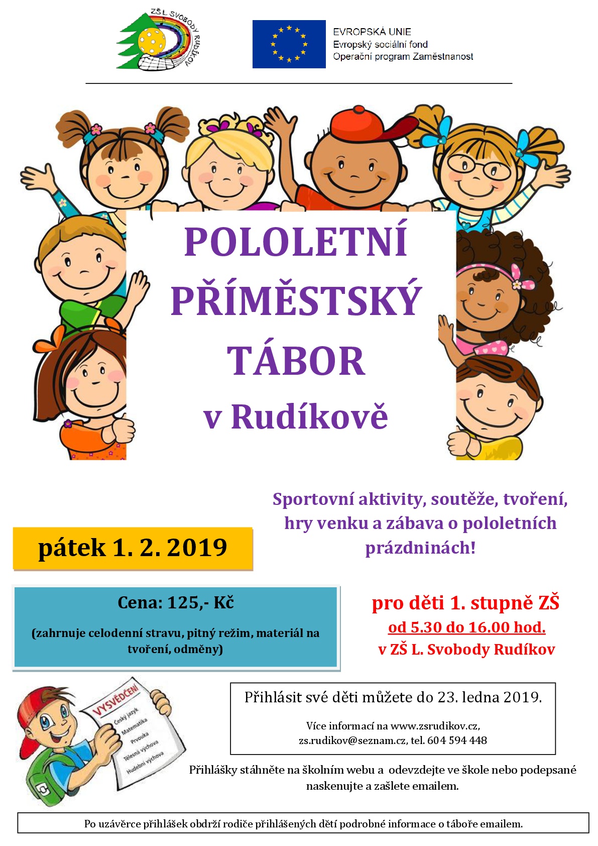 Spouštíme přihlašování na pololetní příměstský tábor, který proběhne v naší škole o pololetních prázdninách v pátek 1. 2. 2019.