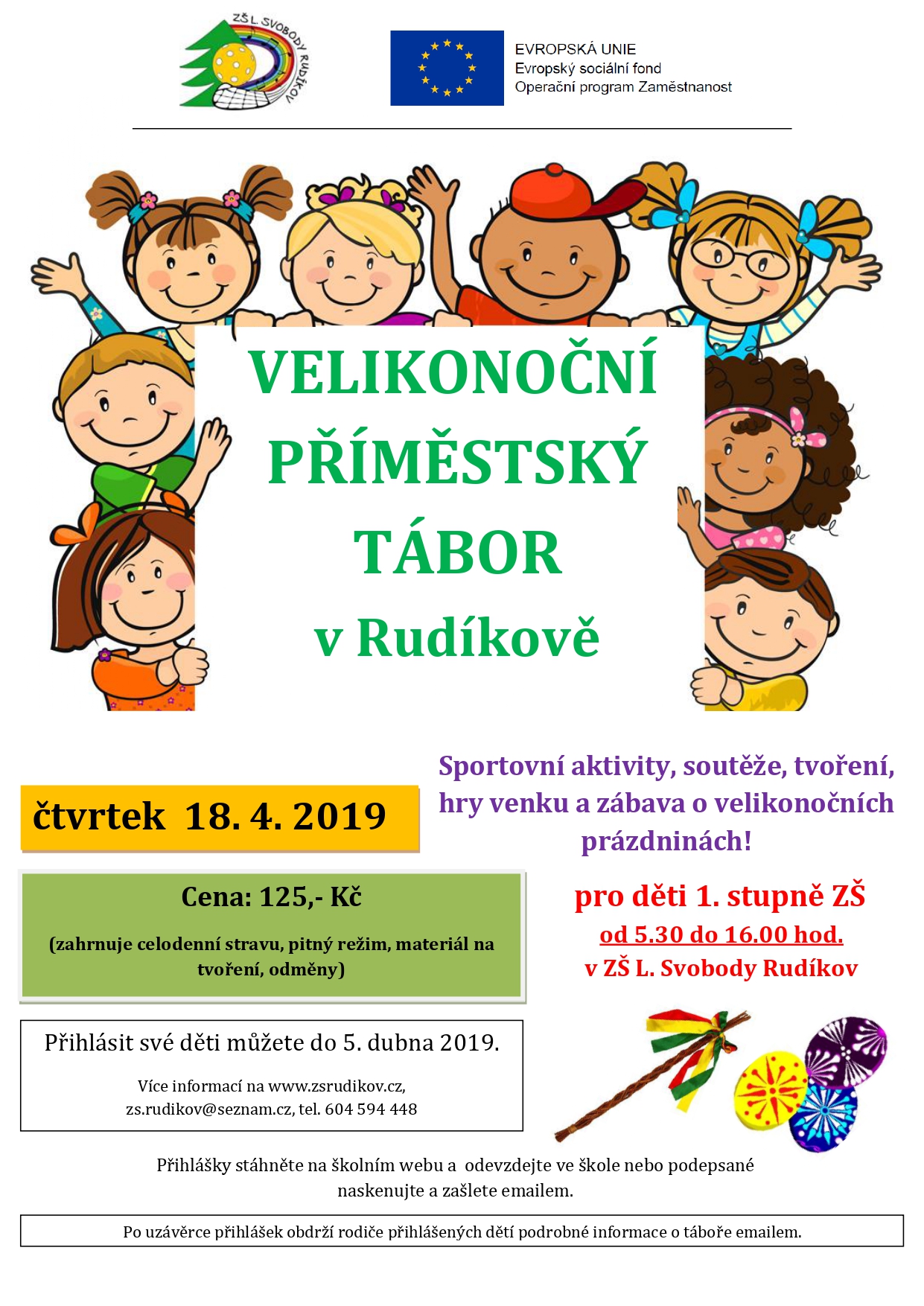 Spouštíme přihlašování na velikonoční příměstský tábor, který proběhne v naší škole ve čtvrtek 18. dubna 2019.
