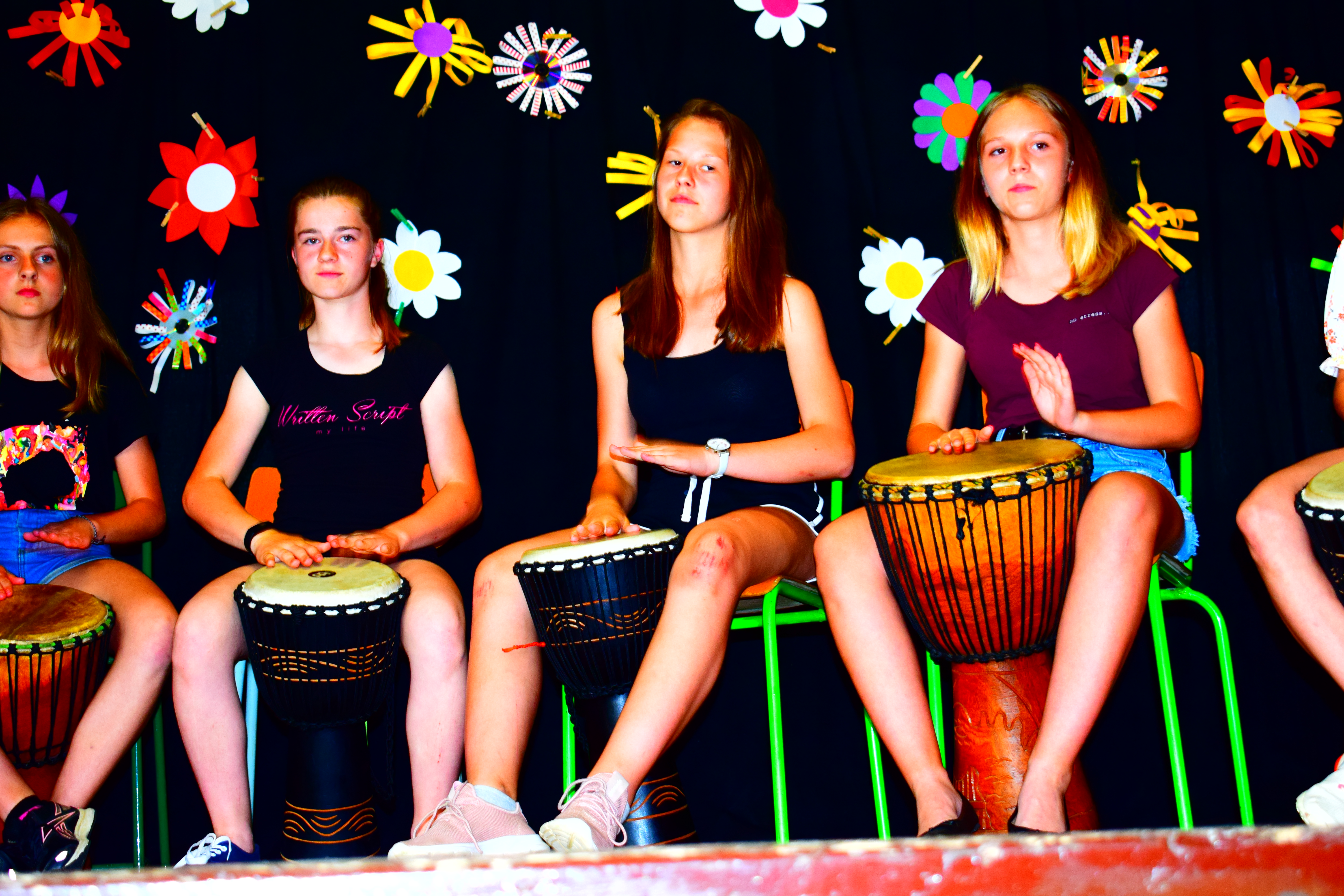 Rudíkovští bubeníci ukázali svoje umění na školní besídce. A aby se na jejich bubnech nehromadil prach, dostali letos k Vánocům dárek - bubenický workšop od Kamily Šimkové.