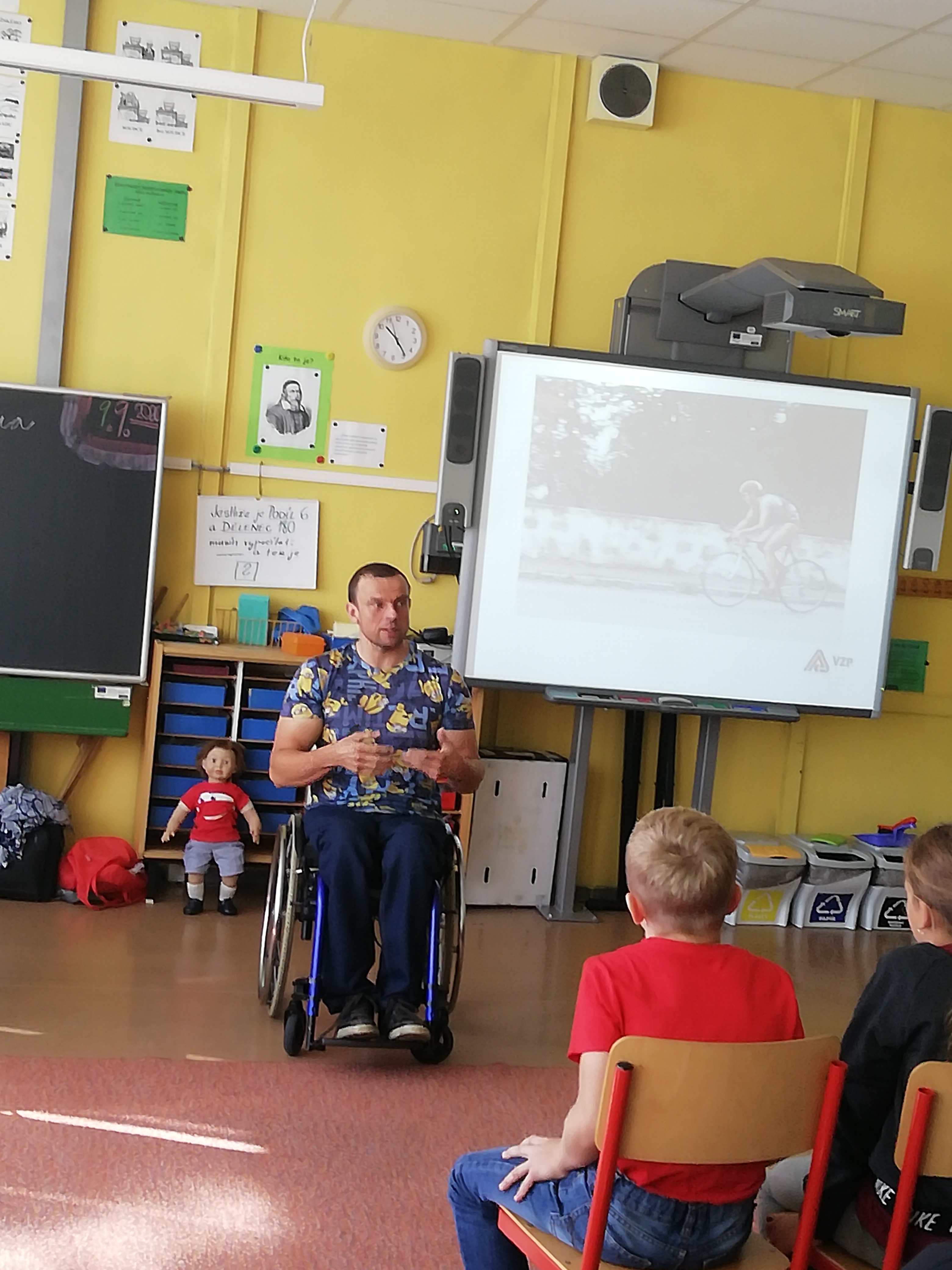 Ve středu 9. září naši školu navštívili dva ambasadoři projektu Vzpoura úrazům – Jarmila a Zbyněk. Byli vstřícní, sympatičtí, sportovně založení, lišili se od nás jen v jedné věci – jsou již několik let připoutáni na invalidní vozík…
