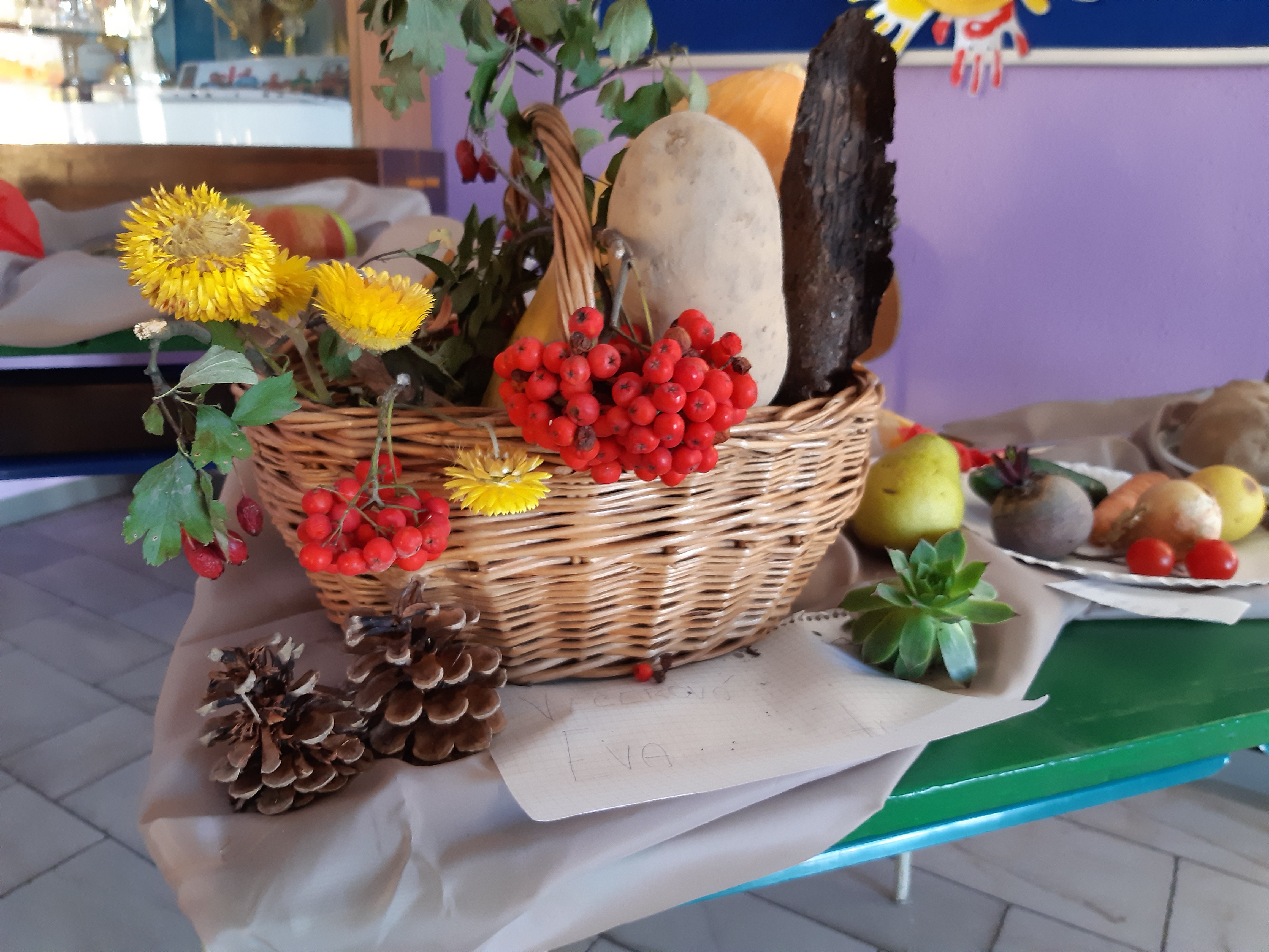 Od 14. září jsme mohli obdivovat ve vstupní části školy na mramoru výstavku podzimních plodů (jablka, hrušky, švestky, kukuřice, rajčata, papriky, dýně, cukety apod.), ale i květin (jedlé květy řeřišnice) a kořenů (kořenová zelenina).