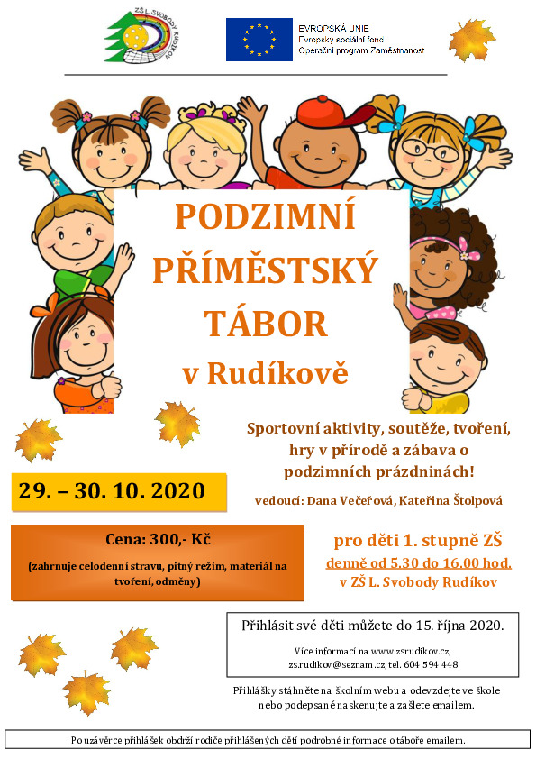 Spouštíme přihlašování na podzimní příměstský tábor, který proběhne v naší škole 29. - 30. 10. 2020.