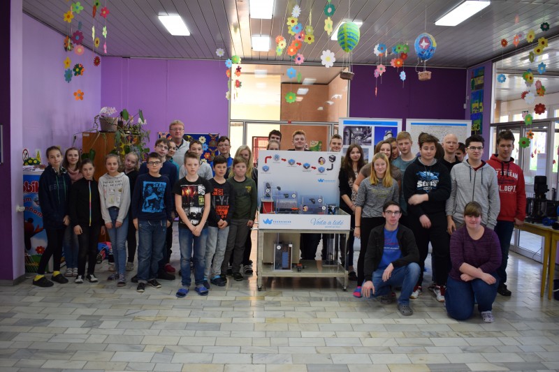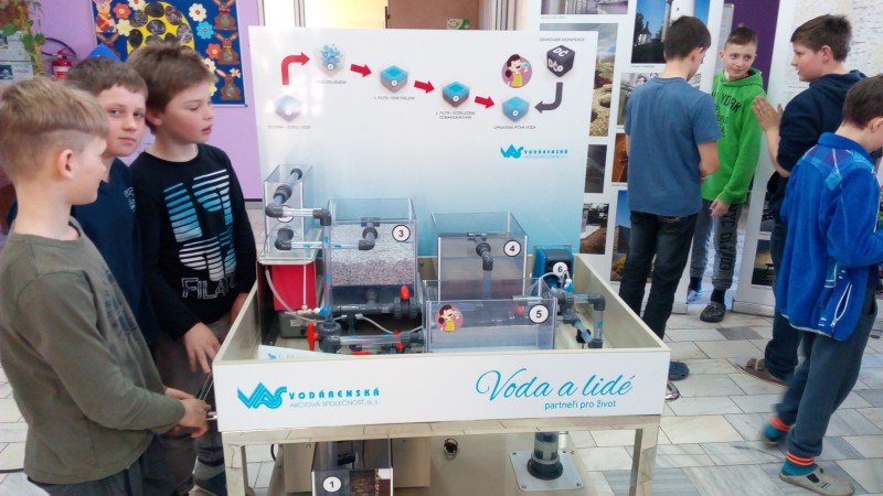 22.3. u příležitosti Světového dne vody zhlédli všichni žáci naší školy program o vodě, se kterým přijeli pracovníci Vodárenské a.s. z Třebíče. Nejprve sledovali filmy o oblastech světa, které trpí nedostatkem vody, a o kanalizaci a odpadních vodách u nás. Potom se přesunuli k modelu úpravny vod, na kterém mohli sledovat cestu vody od přírodního zdroje až ke spotřebiteli. Žáci také dostali odpovědi na četné otázky, které pokládali během celého programu.