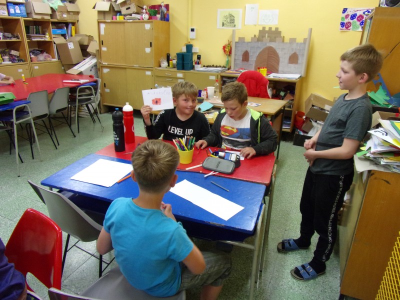 Ale ani v červnu nemohly chybět venkovní aktivity v podobě hry na schovávanou, hraní fotbalu na víceúčelovém a travnatém hřišti. Mezi další oblíbené aktivity patří jízda na koloběžce, hra na vybíjenou apod. Holčičky se zajímaly hlavně o malování křídami na venkovních tabulích, které jsou součástí areálu školy. Jinak chci poděkovat všem dětem, které navštěvovaly klub ve školním roce 2018/2019. Především chci pochválit Aleše Kourka, kterého keramika okouzlila natolik, že je vidět na jeho výrobcích, jak se jeho tvorba posunula dopředu. Kryštůfkovi chci poděkovat za jeho šibalský usměv, Ondrovi za nekonečný počet vtipů. Vojtovi a Tomášovi za velké nasazení ve sportovních aktivitách, Pavlíkovi za jeho krásný úsměv, Jiříkovi Klemerovi při přípravě pomůcek k různým sportovním i výtvarným aktivitám, Samuelovi za jeho nekonečný humor a úsměv. A co teprve Štěpánův lenochod, ten by v klubu nemohl chybět, Davidovi za jeho sběratelskou vášeň fotbalových kartiček, Adélce Havlíčkové za pomoc při organizaci na pohádkovou cestu, která by bez Adélky byla poloviční. Jakubovi za jeho příjemné až gentlemanské vystupování. Aničce, Monice, Ivance, Anežce za pečlivost a kreativitu při výtvarných a sportovních aktivitách. Dále bych chtěla poděkovat všem rodičům, kteří nám dali v klubu důvěru.