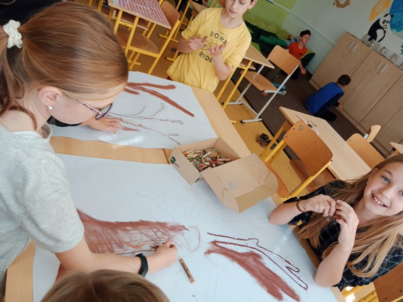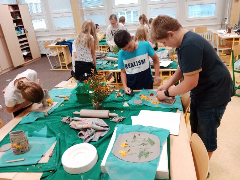 Konečně září! Zdravím všechny fanoušky dětského klubu, hlavně nové děti, které se přihlásily do Dětského klubu. Musím uznat, že holky i kluci jsou velmi živá parta. Kluci mají rádi fotbal, pin pong, ale zároveň umí přidat ruku k dílu, abychom mohli s holčičkami vytvořit společnými silami podzimní dekorace na výzdobu oken školy. Sami však můžete posoudit, až povedete děti do školy, jak jsou šikovné a tvořivé. Ve fotogalerii můžete vidět, že jsme tvořili jak papírové dekorace, tak i ty hliněné. Děti si také vyrobily mýdlenky, do kterých si mohly otisknout strukturu rostlin listů a hub co jsme si nasbíraly v okolí školy.