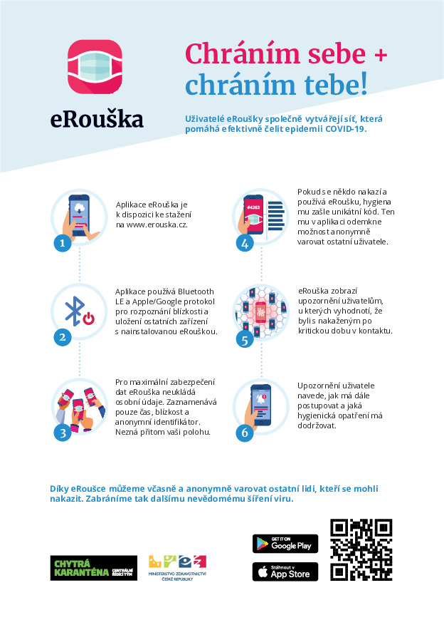 Hlavní myšlenka nové eRoušky stojí na dobrovolnosti a rovněž na přísném protokolu, který chrání osobní data uživatelů. Aby se tato aplikace stala efektivním nástrojem boje proti koronaviru, musíme dosáhnout jejího co největšího rozšíření ve společnosti.