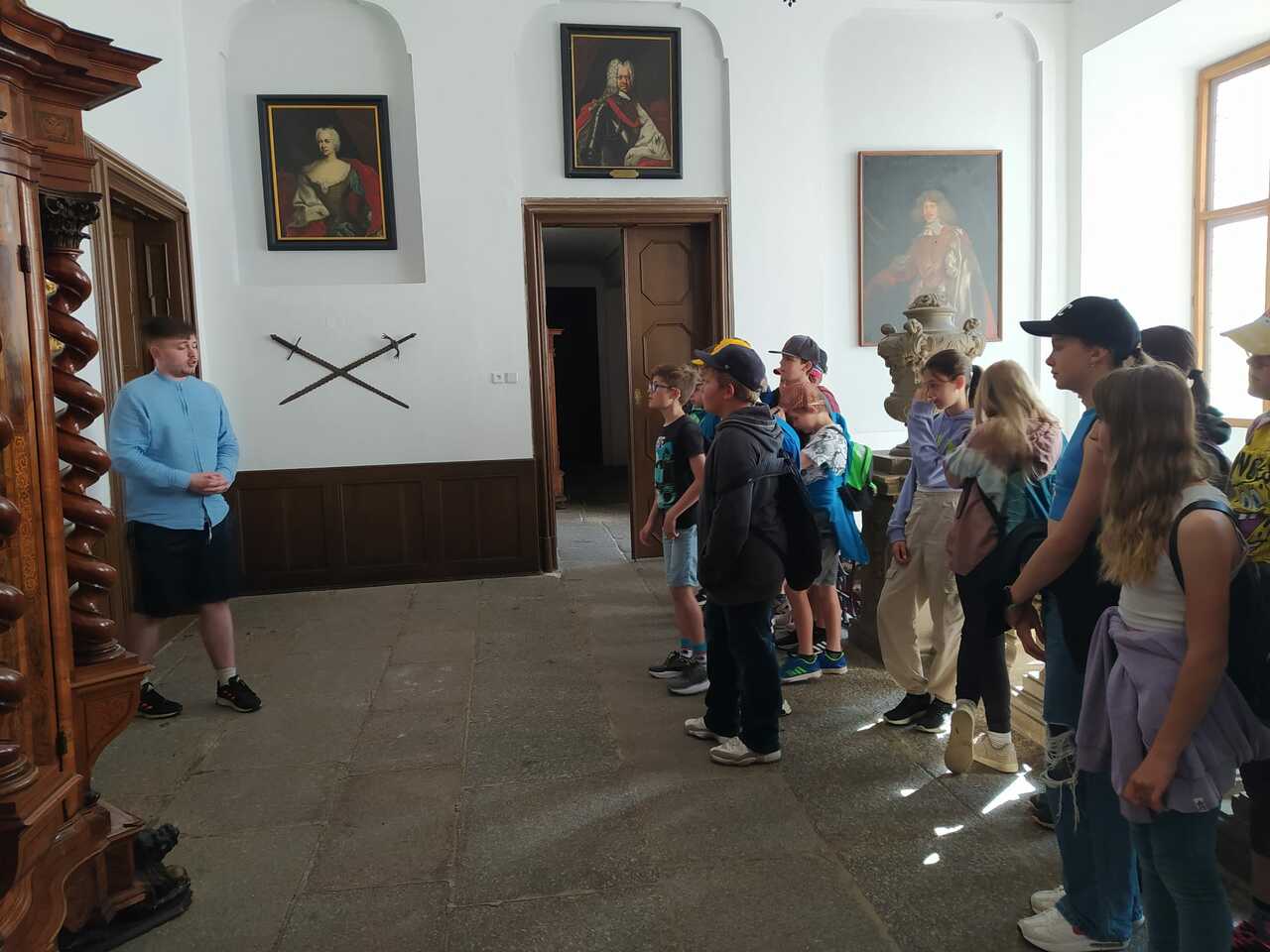 Jejich první kroky vedly k zámku, kde si šesťáci prošli prohlídkovou trasu A a sedmáci se zúčastnili programu muzea „Vidět, slyšet, kreslit, psát“, zaměřeného na kaligramy a japonskou haiku.