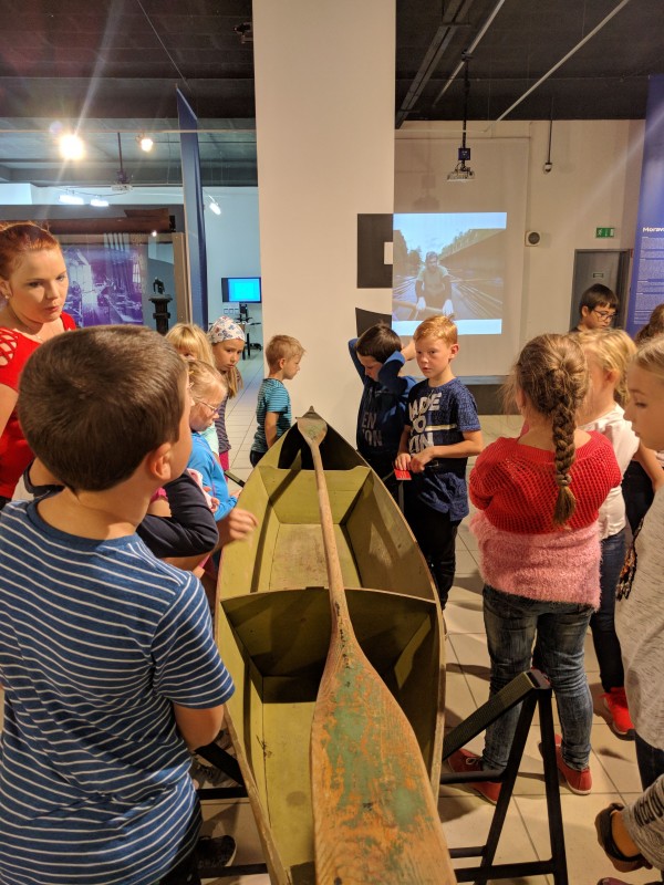 Na výstavě o počátcích sportování v Brně se seznámily s historií i současností cyklistiky, veslování a šermu. Vyzkoušet si mohly cyklistický a veslařský trenažér a ti odvážnější si zkusili i zašermovat.