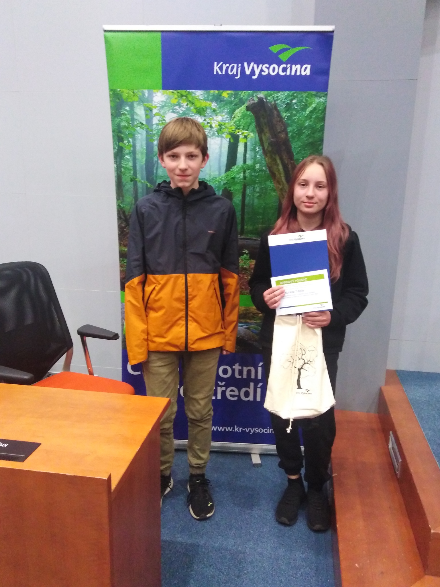 Vysočina, kraj hlubokých lesů a zemědělství. Kraj, který dokáže být drsný, ale také přívětivý. Zkrátka Vysočina je kraj, kde má své místo lesnictví i zemědělství. A právě v těchto dvou oborech poměřili své síly dva zástupci naší školy. V pátek 12. května se v sále Krajského úřadu v Jihlavě uskutečnilo krajské kolo soutěže Lesnictví a zemědělství na Vysočině. Naši školu reprezentovali Gabriela Teplá a Tomáš Mayer. Za účasti 34 škol z celé Vysočiny se hlavně Gábina neztratila a obsadila krásné 7. místo. Tím si vybojovala účast na dvoudenním výletě pro 20 nejlepších. Tomáš sice mezi dvaceti nejlepšími nebyl, ale i tak mu patří poděkování, stejně i Gábině, za vzornou reprezentaci školy.