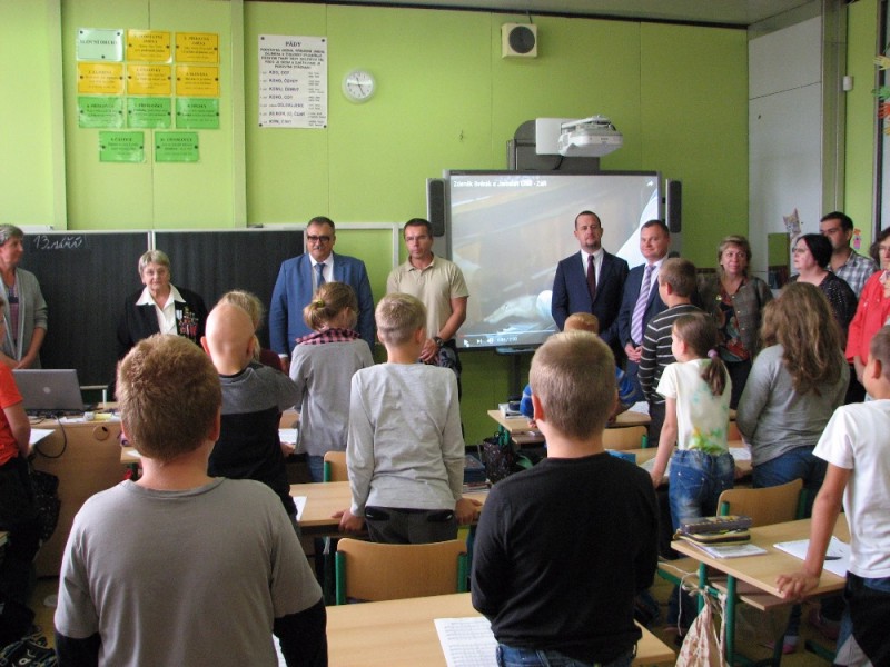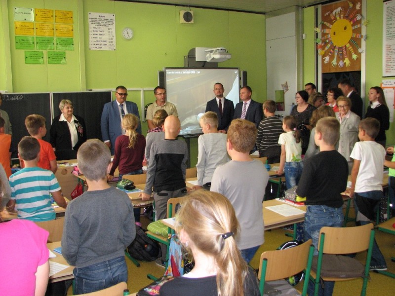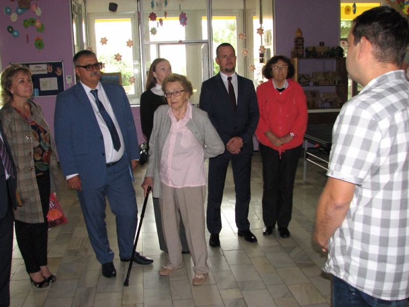 Osmičlenná delegace navštívila naši školu ve středu 13. září. Ve vestibulu ji ředitel školy krátce seznámil s historií školy, převzal drobné pamětní dary a nabídl jim, aby si vybrali k nahlédnutí nějakou třídu. Pan Bogatyrjov otevřel první dveře, kde probíhala právě výuka hudební výchovy. Děti zazpívaly za klavírního doprovodu paní učitelky narozeninovou písničku učitelce Julii z pedagogické školy v Buzuluku. Za odměnu dostaly odznáčky se znakem města.