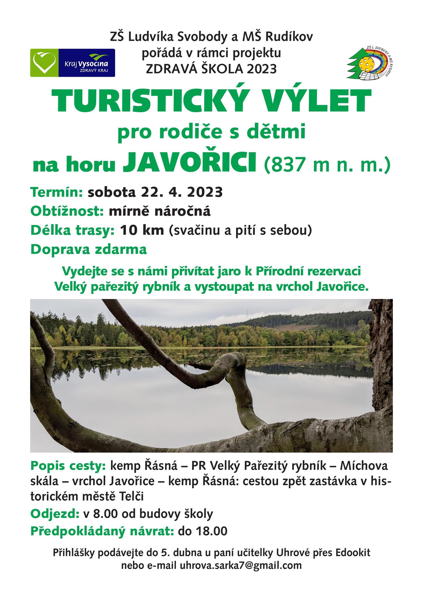 zveme Vás na výšlap do jarní přírody směr Přírodní rezervace Velký Pařezitý rybník a Javořice (837 m n. m.).