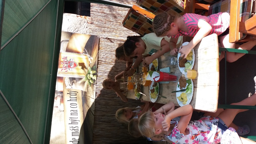 Na obědy jsme chodili do hostince U Kostela. Příjemnou společnost nám dělali pštrosi, morčata i andulky. Na obědech jsme si moc pochutnali. Než nám trošku „slehlo“, zahráli jsme si hru jméno, město, věc. Přitom jsme potrápili své mozkové závity. Jízda na kolotoči nesměla žádný den chybět.
