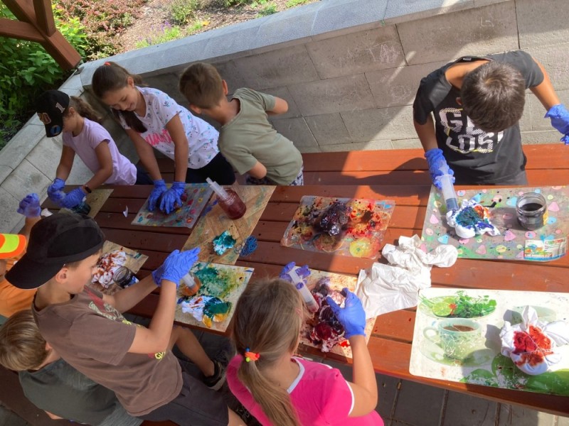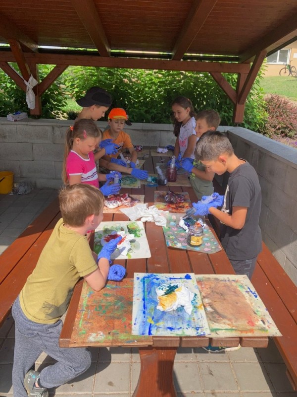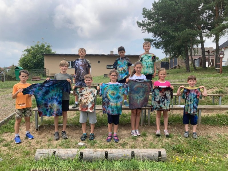 Při zahájení naší společné cesty do vesmíru bylo nutné, aby si děti vytvořily svůj vlastní cestovatelský skafandr. Proto jsme s nimi první den vyráběli batikovaná trička, která měla tento nutný oblek symbolizovat.