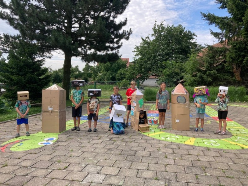 Další velmi důležitou části kosmonautického obleku je samozřejmě helma, na kterou děti dostaly veškeré potřebné vybavení, které má správná helma mít, aby fungovala a děti ji zvládly vyrobit. Poslední a nejvíce důležitou částí je samozřejmě cestovatelský prostředek do vesmíru, kterým je raketa. Děti vyrobily hned 3. Na všech se hodnotilo několik aspektů, kterými byly vzhlednost, aerodynamičnost, výška výrobních nákladů a v neposlední řádě schopnost odolání nárazu asteroidů. Krom špičkového vybavení, které je při letu do vesmíru potřeba, je nutné mít i špičkové kosmonauty. Proto jsme u dětí testovali kromě fyzické zdatnosti v podobě výdrže a rovnováhy i vědomostní stránku. Otázky byly mířeny na názvy planet, různá vesmírná tělesa, na atmosféru ve vesmíru atd. Závěr tréninku byl mířen na schopnost orientace při simulačním letu a zamotání v černé díře. Všechny děti obstály, a tak jsme mohli všichni vzletět na oběžnou dráhu.