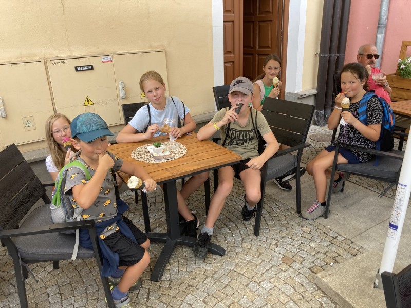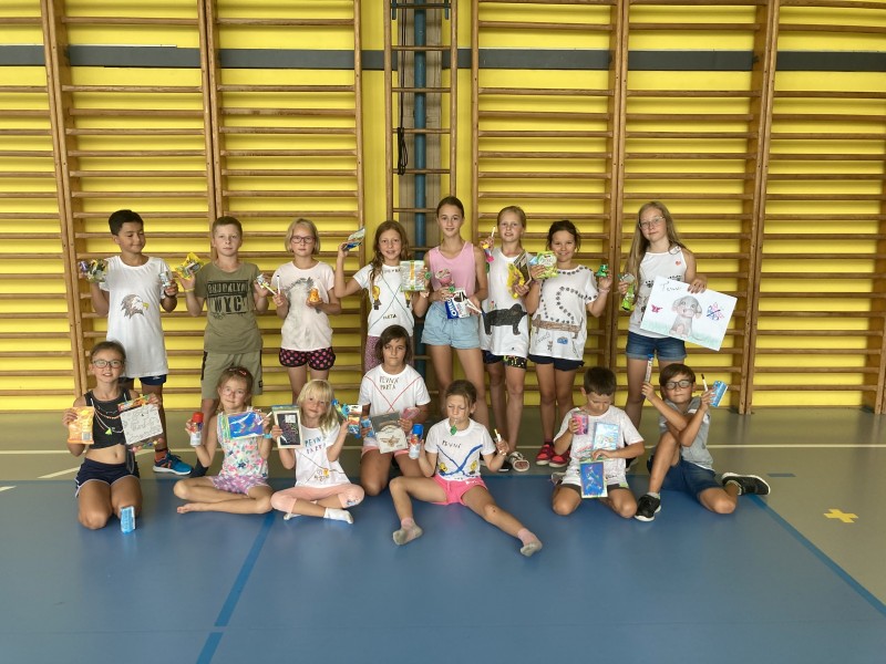 Bohužel v úterý nám počasí tolik nepřálo, a proto jsme strávili den převážně v tělocvičně soutěžením o klíče a indicie, které byly nutné k následnému otevření brány od pokladnice. Následující den jsme se autobusem vydali do nedaleké Třebíče, konkrétně do Labyrintu (rodinný zábavní park), který tematicky souvisel s naším táborem, a zkrátka nemohl v našich pěti společně strávených dnech chybět. Ve čtvrtek pokračoval boj o indicie a klíče a na většině táborníků bylo znát velké zapálení a soutěživost. Parný den jsme zakončili vydařenou vodní bitvou na víceúčelovém hřišti u školy a těšili se na závěrečný den. Všechny týmy uhodly pomocí indicií klíčové slovo a otevřely tak pokladnici, kterou nám nahradila nářaďovna v tělocvičně. O délce strávené v pokladnici a vzdálenosti od ní rozhodovaly nelehce nasbírané klíče. Každý tým si vybojoval několik cen. Celý týden se velmi vydařil a my se budeme těšit zase někdy příště!