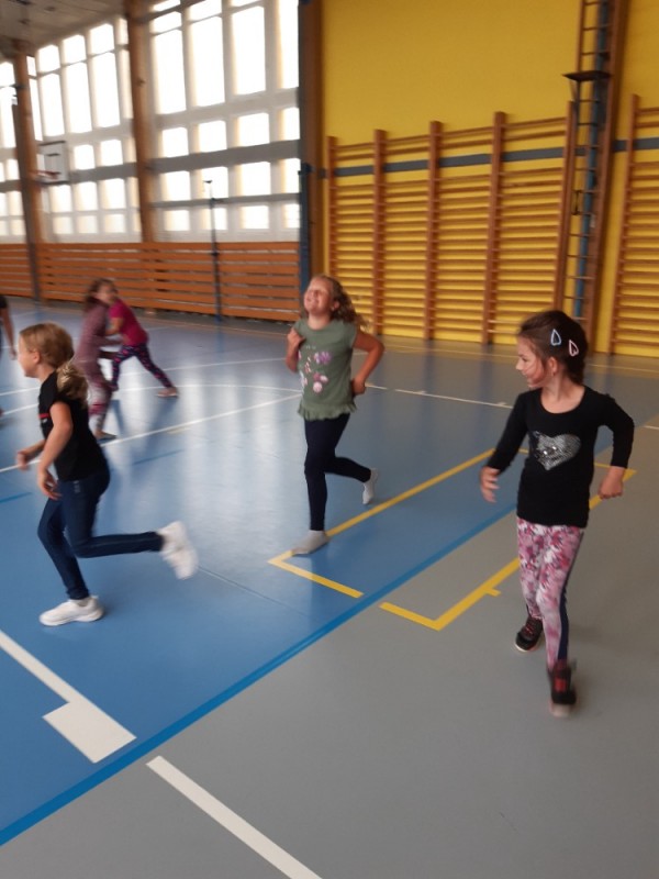 Před obědem jsme vyrazili do tělocvičny, kde jsme si zahráli fotbal, házeli míčem na koš, zacvičili si na gymnastických míčích, zahráli hry Mrazík, Městečko Palermo.