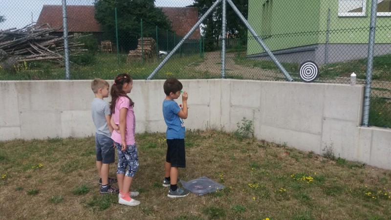 Čtvrtek. Náš velký den. Vyrazili jsme na výlet do Alternátoru na přednášku o vesmíru. Podívali jsme se na to, jak vypadají planety v naší sluneční soustavě, obdivovali Zemi, a to, jak vypadá, když zapadne slunce a prozkoumali Měsíc i z odvrácené strany. Nakonec byla i odměna v podobě návštěvy cukrárny, kde se všichni na zpáteční cestu posilnili zmrzlinou. Den ještě nebyl u konce, a tak jsme zkoušeli střelbu z vodních pistolí. Terč ovšem po chvíli nestačil a celá skupina se obrátila proti své paní vedoucí. Hlavní je, že byla zábava.