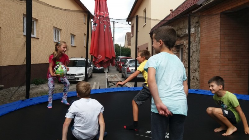 Když jsme přišli do třídy, z holčiček se staly módní návrhářky a na papír si vyráběly vlastní šaty. Druhý den, i navzdory ne moc příznivému počasí, jsme šli na výlet do Náramče na Pohodu. Cesta rychle utekla a děti se za odměnu mohly vykoupat v bazénu, a poté si dát i nanuka nebo zmrzlinový pohár. Ve středu jsme každému dítěti přiřadily jeden stát a děti měly za úkol na papír namalovat, čím je stát významný. Tyto plakáty se dětem moc povedly. Po obědě jsme s dětmi šly do tělocvičny, kde se pořádně vydováděly. Nejvíce je však bavila vybíjená, kterou jsme si s nimi také zahrály. Předposlední den děti malovaly na kamínky. Některé to tak moc zaujalo, že si pomalovaly i 8 kamínků. V pátek měly děti možnost si vyrobit něco ze sena nebo vyrobit zvířátka na kolíčku. Ze sena například vznikla krásná sova nebo kočička. Z kolíčku si děti vyrobily žraloka, pejska, medvídka, ovečku a jiné. Po celou dobu na táboře si děti pletly košíky z papíru. Myslíme si, že se tábor vydařil.