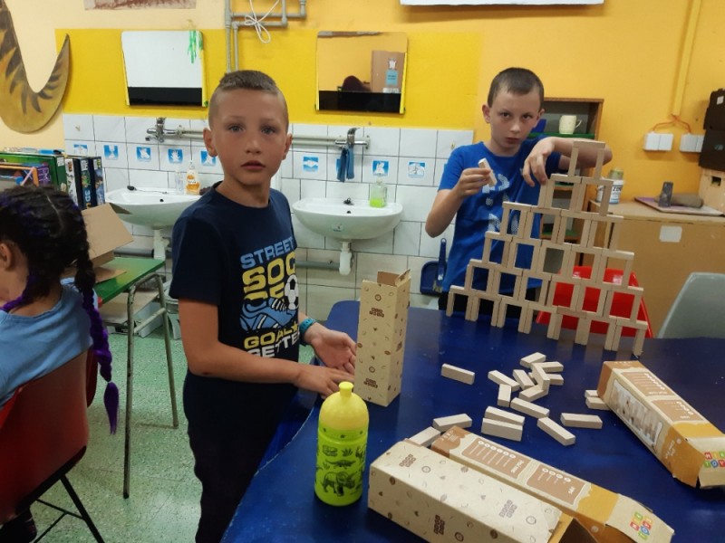 Ve čtvrtek jsme pomocí akvarelových fixí vybarvili obrázky s krajinami a vodou, doplétali košíčky z papírových ruliček a malovali na obličej. Hned po svačině nás čekala cesta k rybníku Visílka, vědomostní hra, hry na prolézačkách a příjemně strávený čas na vyhlídce u benzínky. Po obědě si děti hrály s kostkami, stavěly různé stavby, dokončovaly obrázky z akvarelu, hrály karty. Odpoledne nás čekala péče o vyvýšené záhony a jejich zalévání. Za odměnu jsme si pak zahráli na schovávanou, na prolézačkách, vybíjenou a stříleli z luku s šípy.