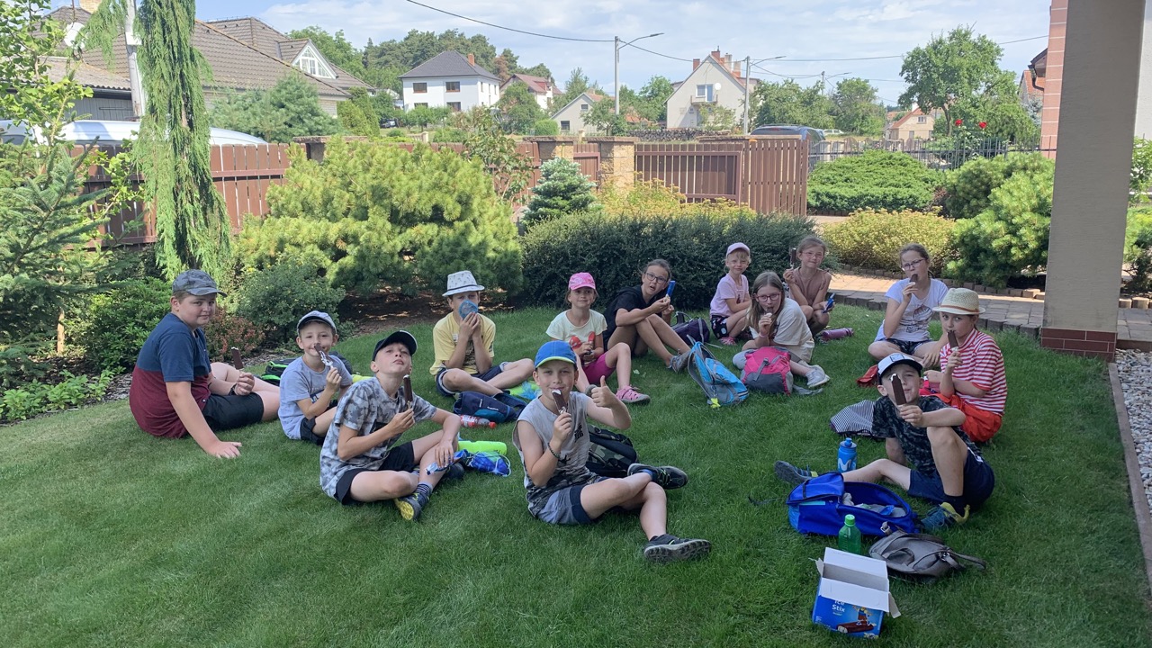 Ve středu nás čekala celodenní výprava za poznáním krás Rudíkova a jeho okolí. Vydali jsme se k rybníku Herádka, kde děti měly za úkol postavit domečky pro skřítky z různých přírodnin v blízkém lesíku. Nejhezčí výtvory si samozřejmě zasloužily odměnu. Dále jsme se přesunuli zpět do Rudíkova, kde nesměla chybět ani obědová pauza a zastávka na nanuky. Ty v teple dětem velmi chutnaly. Následovala také návštěva hřiště a hry na schovávanou.