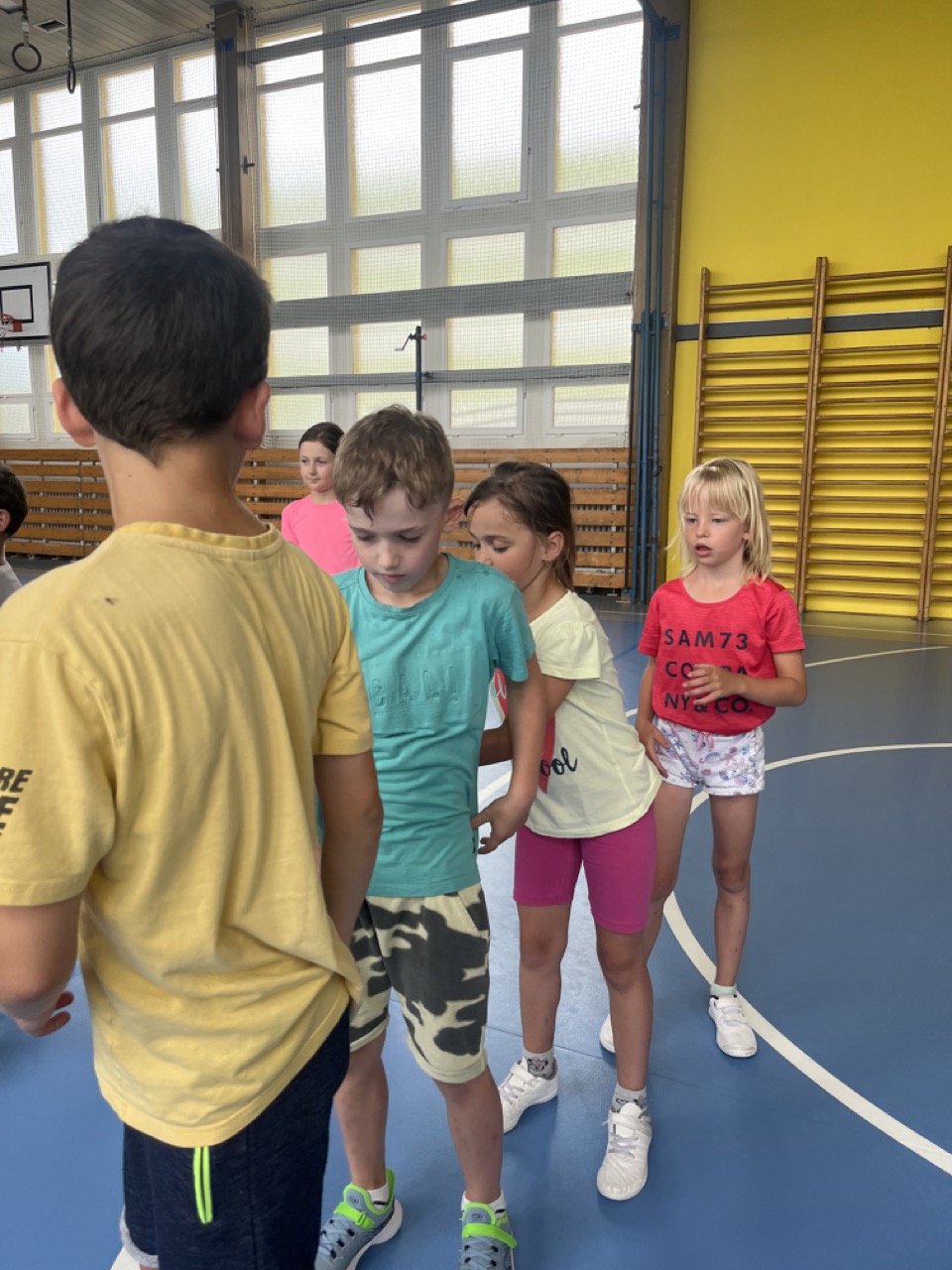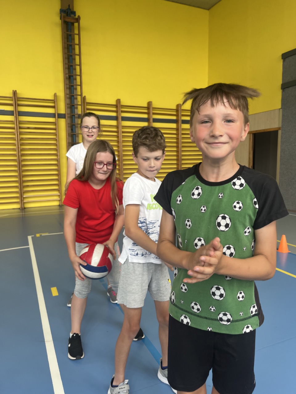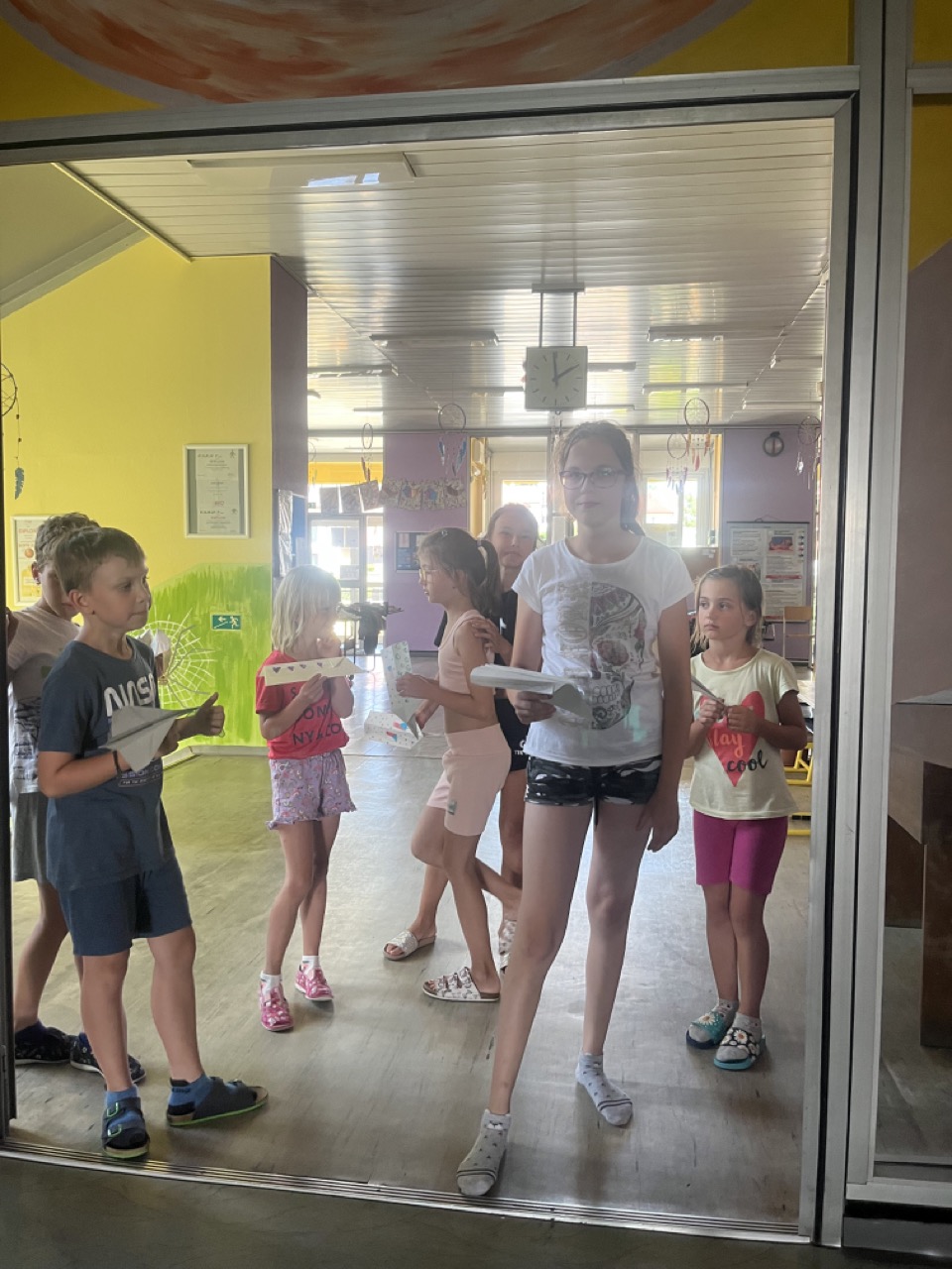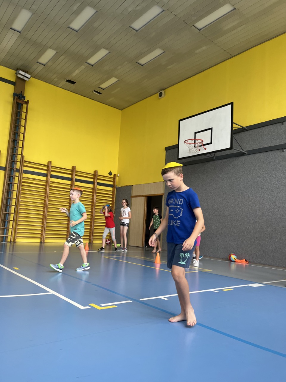 Na zbytek dopoledne jsme se přesunuli do tělocvičny, kde se konaly různé sportovní soutěže v týmech. Jelikož jsme se rozhodly se na táboře zaměřit spíše na vyrábění a rozvíjet kreativitu dětí, nesměly výrobky chybět již první den po obědě. Děti si namalovaly strom osobnosti, který pak jiné děti poslední den doplnily o hezké popisky vystihující vlastnosti daného člověka. Dalším výtvorem byl 3D krab, který se dětem velmi povedl.