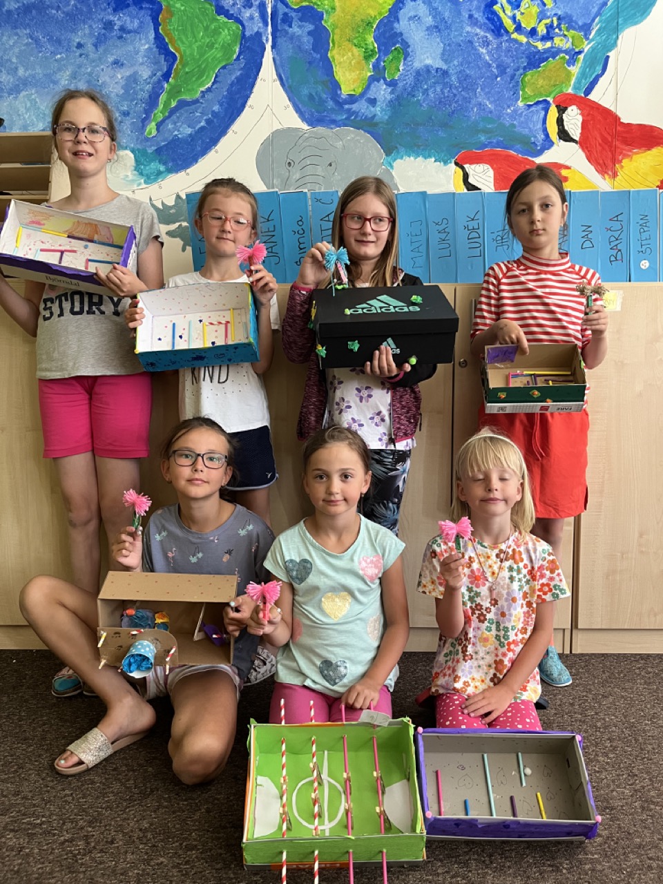 Po čtvrtečním shledání jsme se opět naplno vrhli do vyrábění. Tentokrát se jednalo o výrobky z krabic – nejčastěji fotbálek nebo bludiště, které sice dětem trvalo vyrobit skoro celé dopoledne, ale výsledek stál rozhodně za to. Velmi se nám líbilo, že každý do tvoření vložil kousek sebe a opravdu se snažil. Po obědě jsme šli na chvíli ven na ovál, kde si děti zahrály míčové hry.
