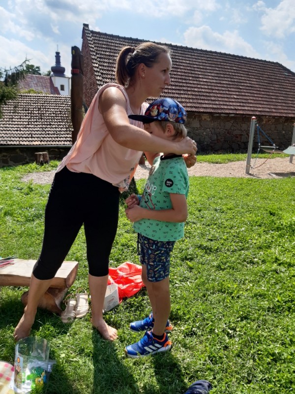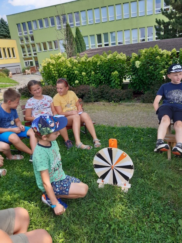 Páteční ráno bylo velmi tiché. Vyráběly se totiž obrázky ze zažehlovacích korálků, které potřebují velké soustředění. Slunečný den nás lákal k procházce po Rudíkově. Proto jsme se šli pokochat krajinou kolem rybníku Visílka a pak k Vyhlídce, kde si děti užily na přilehlém hřišti. Celý týden jsme zakončili „Kolem štěstí“, kdy si děti postupně zatočily číslo s otázkou a po správné odpovědi obdržely keramickou medaili na památku a další drobnosti. Nechybělo ani poslední zalévání rostlin ve vyvýšených záhonech.