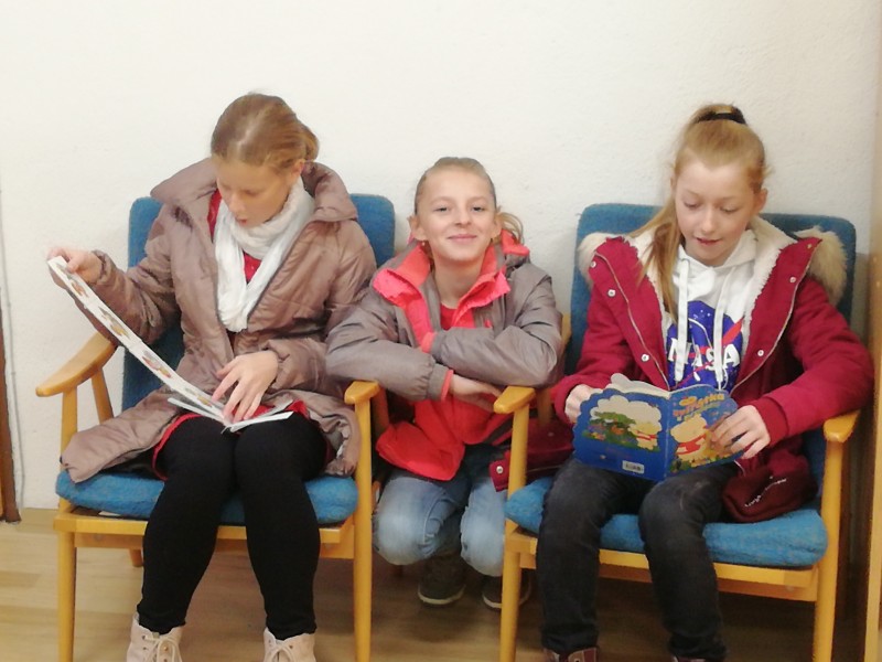 Zde nás velmi mile přivítala paní knihovnice Petra Robotková, která nás zasvětila do tajů této instituce. Děti seznámila s historií knihovny, počtem a nabídkou titulů, jejím vedením a činností. Žákům vysvětlila, jak se zde orientovat a jakým způsobem jsou díla řazena. Když byly základní informace vyčerpány, vydali se žáci prozkoumat jednotlivé části, prohlíželi a pročítali díla známých i méně známých autorů či hráli společenské hry. Ale čas utíkal jako voda a nezbývalo než knihy uložit na svá místa a vydat se zpět do lavic.