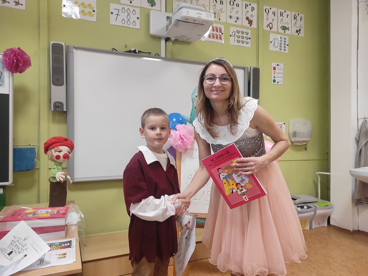 Téměř tři měsíce se naši prvňáčci prokousávali prvními písmenky, začali je skládat do slabik a do prvních slov. Ve středu 22. listopadu 2023 se rozloučili s Živou abecedou a slavnostně dostali svůj nový Slabikář. V celodenním projektu děti zachraňovaly zakleté království, ve kterém neuměli lidé číst, psát a počítat. Po splnění úkolů získaly děti pět kouzelných klíčů a zachránily tímto smutné království. Slavnostní den i hostinu si děti velmi užily, přejeme jim hodně jedniček v jejich novém slabikáři.