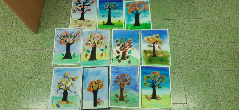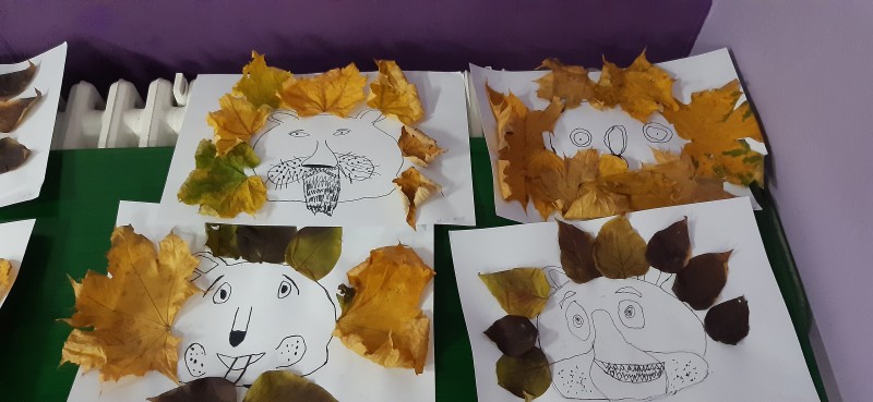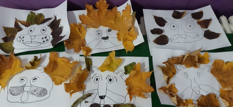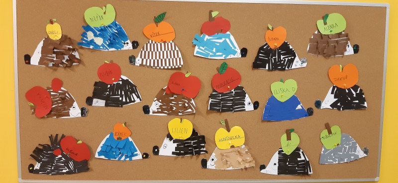 Děti pracovaly s tiskařskou barvou či temperami a válečkem, vystřihovaly, trhaly a lepily, kreslily podzimní mandaly a také používaly krásně zbarvené listy javoru, které už není třeba nijak dotvářet. Výtvory žáků krášlí interiér školy.