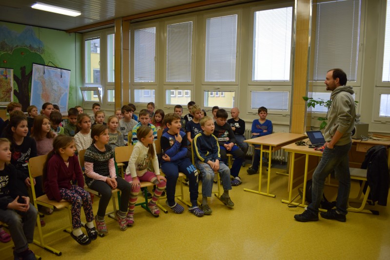 Proč se na takovou cestu vydal, jak se mu běželo, kdo mu nejvíc pomohl a co všechno na své cestě zažil, to nám přišel se svým vodicím psem Blackem popovídat 21. 11. 2018 rovnou do školy. Kdyby zaujetí dětí občas nepřetrhl svojí přítomností Black, nikdo by po celou dobu ani nemuk, tak se dětem i dospělým Ondrovo povídání líbilo.