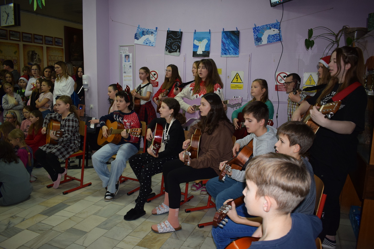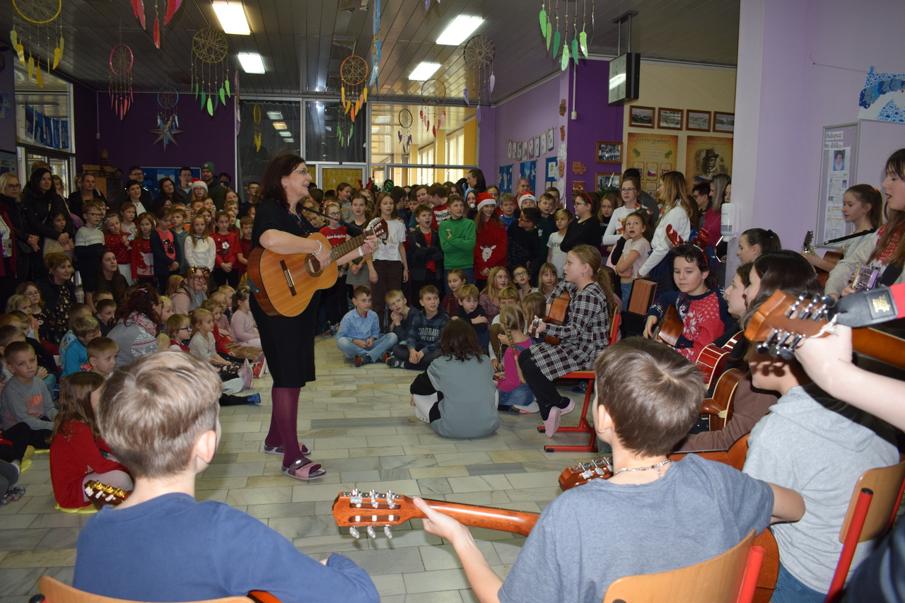 V poslední školní den roku 2023 proběhlo v našem vestibulu tradiční zpívání vánočních písniček a koled. Za účasti všech dětí mateřské školy, žáků základní školy, učitelů a nespočtu rodičů jsme společně vstoupili do krásného vánočního období.