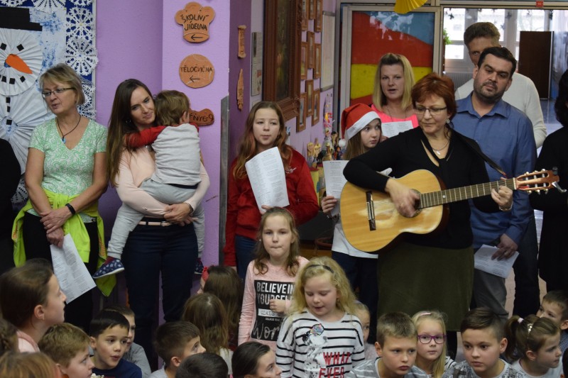 V poslední školní den roku 2019 proběhlo v našem vestibulu tradiční zpívání vánočních písniček a koled. Za účasti všech dětí mateřské školy, žáků základní školy, učitelů a nespočtu rodičů jsme společně vstoupili do krásného vánočního období.
